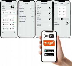 Stacja z WiFi może być połączona z aplikacją TUYA i monitorować dane z dowolnego miejsca na Ziemi.