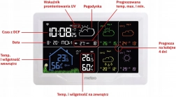 Ta stacja meteorologiczna umożliwia bezprzewodowe pomiary temperatury w zakresie od -30 °C do +50 °C oraz pomiary wilgotności powietrza dla wnętrz i środowiska zewnętrznego.