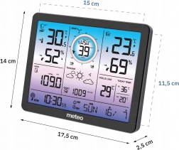 Ta stacja meteorologiczna mierzy wewnętrzną i zewnętrzną temperaturę w zakresie od -30 stopni C do +50 stopni C. Posiada także bezprzewodowy pomiar wilgotności, co pomaga lepiej rozumieć otaczające środowisko. Barometr dostarcza informacji o ciśnieniu atmosferycznym w zakresie 800 do 1100 hPa.
