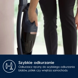 Poznaj wygodny i elastyczny odkurzacz o świetnym ergonomicznym wzornictwie. Jednostkę ręczną łatwo zdejmiesz z rury, aby szybko posprzątać i dotrzeć do trudno dostępnych miejsc.