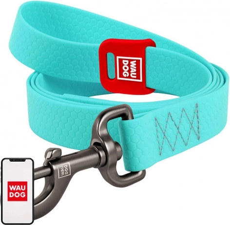 wodoodporna świecąca smycz dla psów WAU DOG 20 mm, 183 cm – turkusowa