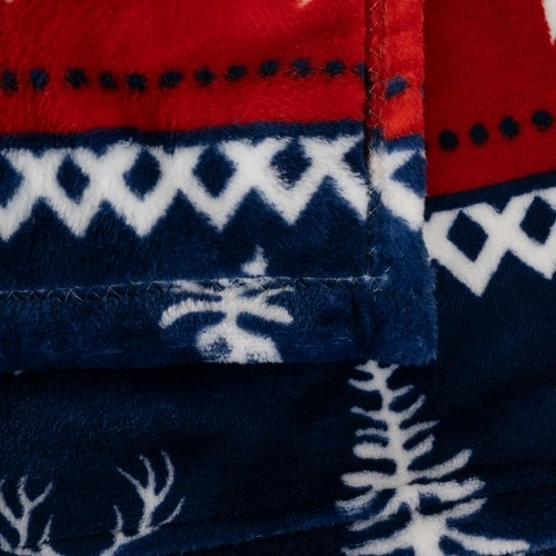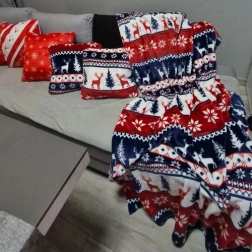 Wprowadź do wnętrza nordycki urok zimy. Koc z motywami reniferów, śnieżynek i choinek w połączeniu granatu, czerwieni i bieli pięknie dopełni sofę i łóżko. Dzięki premium tkaninie z mikrofleecu jest wyjątkowo miękki i ciepły, więc zimę spędzisz w maksymalnym komforcie.