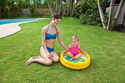 Nadmuchiwany basen Intex My First Pool to świetny wybór na pierwsze wodne harce najmłodszych. Dzięki kompaktowym wymiarom zmieści się praktycznie wszędzie, a jego niewielka wysokość jest bezpieczna dla maluchów. Trwały winyl i dwie oddzielne komory powietrzne zapewniają stabilność i długą żywotność.
