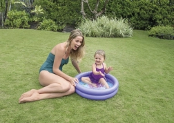 Lekki i kompaktowy dziecięcy basen o średnicy 61 cm i wysokości 15 cm jest idealny na balkon, taras i do ogrodu. Ma dwie nadmuchiwane komory, jest wykonany z trwałego winylu, a dzięki radosnemu wzornictwu ucieszy dzieci w wieku od 1 do 3 lat. Łatwy montaż i składanie, pojemność ok. 17 l przy wysokości lustra wody 8 cm, w zestawie zestaw naprawczy.