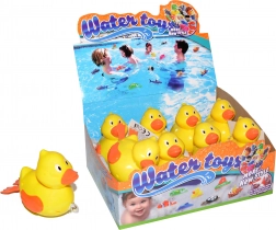 Urocza nakręcana kaczuszka do wanny lub basenu dostarcza dzieciom mnóstwo wodnej zabawy. Wystarczy ją nakręcić i puścić – kaczuszka pływa w wodzie i porusza się do przodu. Idealna do zabawy w wannie, wspiera rozwój motoryki i radość z ruchu w wodzie. Wielkość 13 cm, odpowiednia dla dzieci od 3 lat.