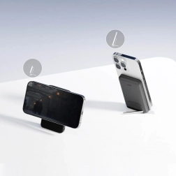 Dzięki funkcji Pass-Through powerbank może działać jednocześnie jako ładowarka biurkowa – po podłączeniu do zasilania doładowuje siebie i urządzenie równocześnie. Kompaktowa obudowa z składaną podstawką umożliwia wygodne oglądanie wideo czy prowadzenie wideorozmów bez trzymania telefonu w dłoni. Wskaźnik LED z czterema diodami czytelnie pokazuje poziom naładowania.