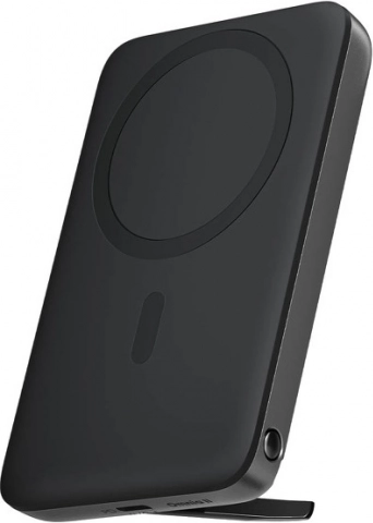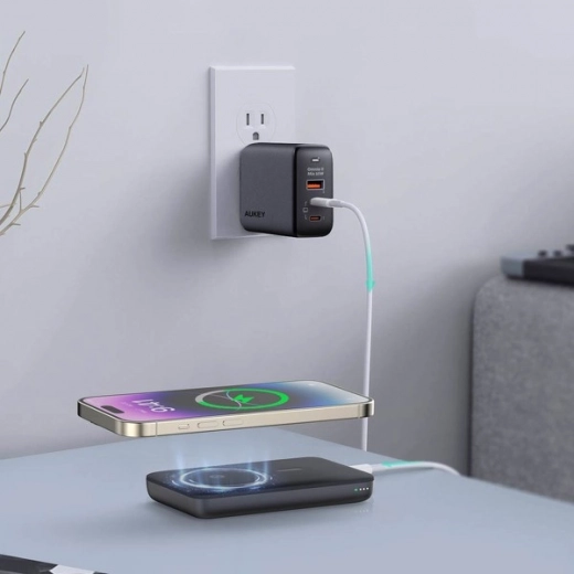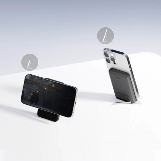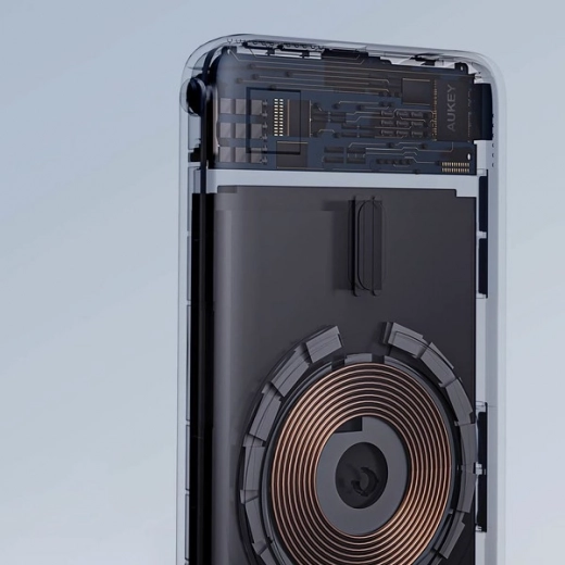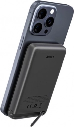 Kompaktowy powerbank AUKEY o pojemności 6700 mAh obsługuje bezprzewodowe ładowanie MagSafe dla iPhone 12 i nowszych, szybkie ładowanie do 20 W przez USB‑C, jednoczesne ładowanie dwóch urządzeń, praktyczny wskaznik LED stanu oraz zintegrowaną, odchylaną podstawkę do wygodnego oglądania treści.