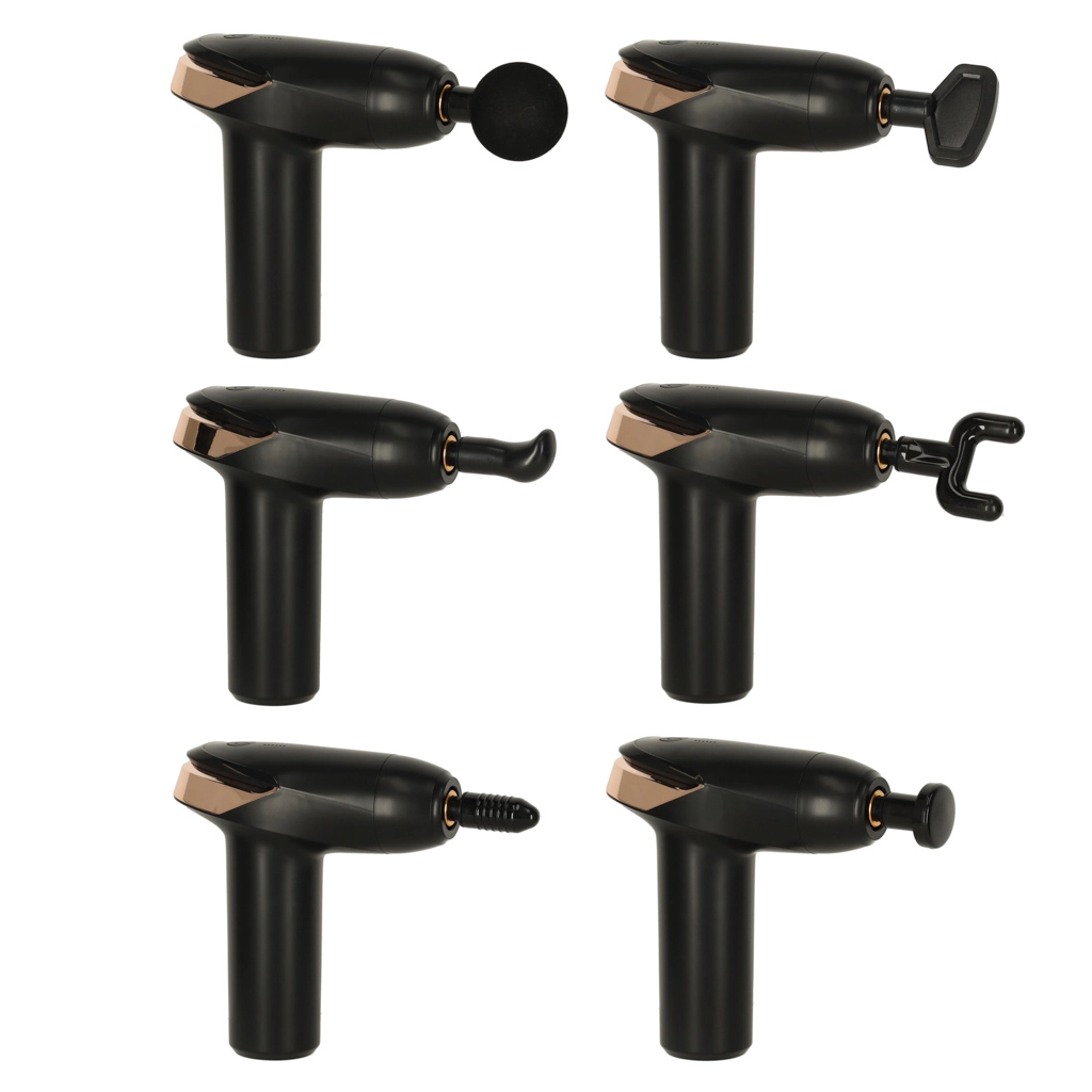 Pistolet do masażu oferuje 6 poziomów intensywności – od delikatnych, relaksacyjnych wibracji po silniejsze uderzenia, które skutecznie stymulują głębokie partie mięśni. Sześć wymiennych końcówek zapewnia optymalny masaż różnych obszarów ciała, aby każdy zabieg był maksymalnie efektywny.