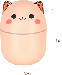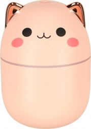 Stylowy różowy nawilżacz w kształcie kotki łączy skuteczne nawilżanie z dekoracyjnym wyglądem. Dzięki zbiornikowi 250 ml działa przez kilka godzin bez konieczności dolewania wody i pomaga złagodzić suche powietrze, podrażnienia dróg oddechowych oraz suchą skórę.