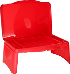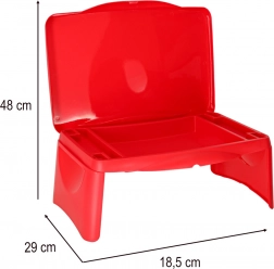 Stolik szybko składa się do kompaktowych rozmiarów, łatwo go przenosić i czyścić. Wytrzymałe wykonanie z tworzywa gwarantuje stabilność i bezpieczne użytkowanie na kolanach i na siedzeniu.