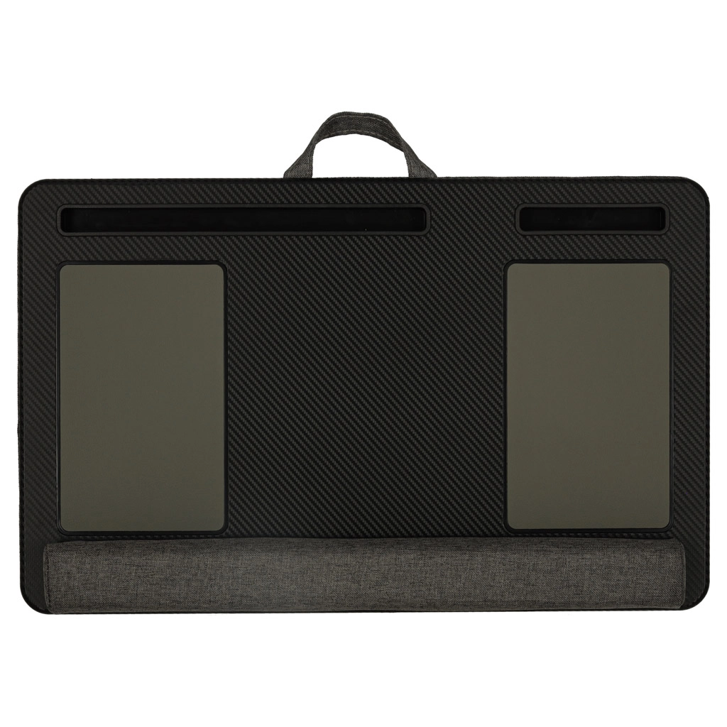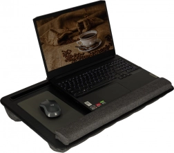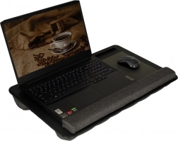 Praktyczny stolik na kolana poprawi Twój komfort pracy w domu i w podróży. Miękkie poduszki na spodzie zapewniają stabilność i odprowadzanie ciepła od nóg, a górna wytrzymała płyta daje pewne podparcie dla laptopa i myszy. Zintegrowane podparcie nadgarstków pomaga zmniejszać zmęczenie podczas długiego pisania.
