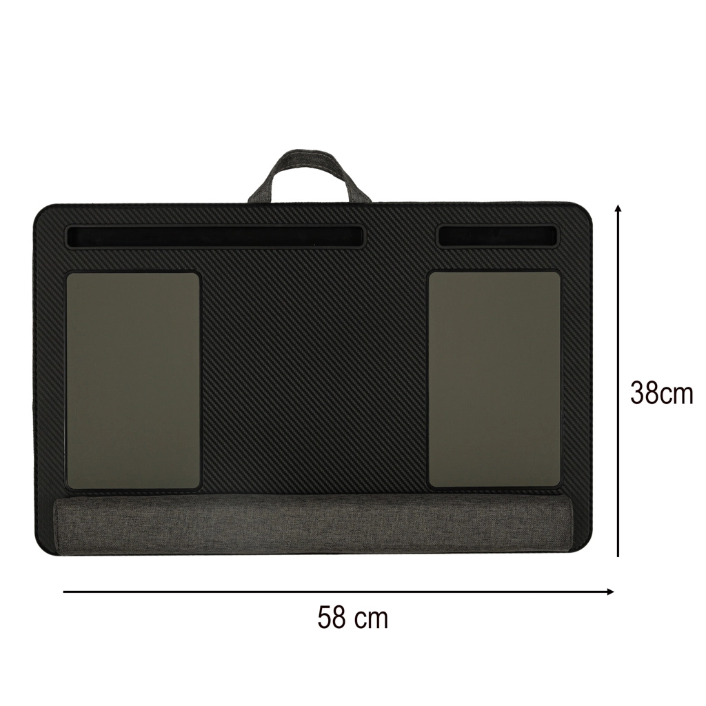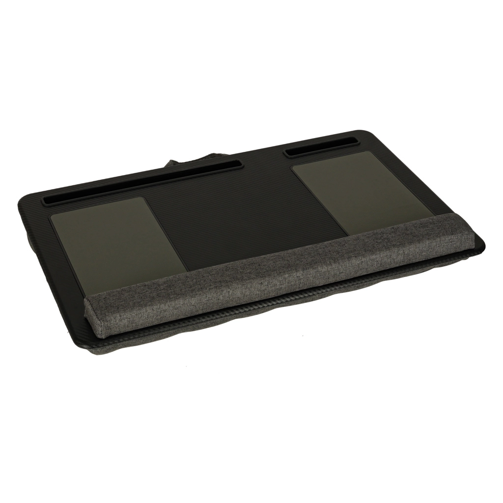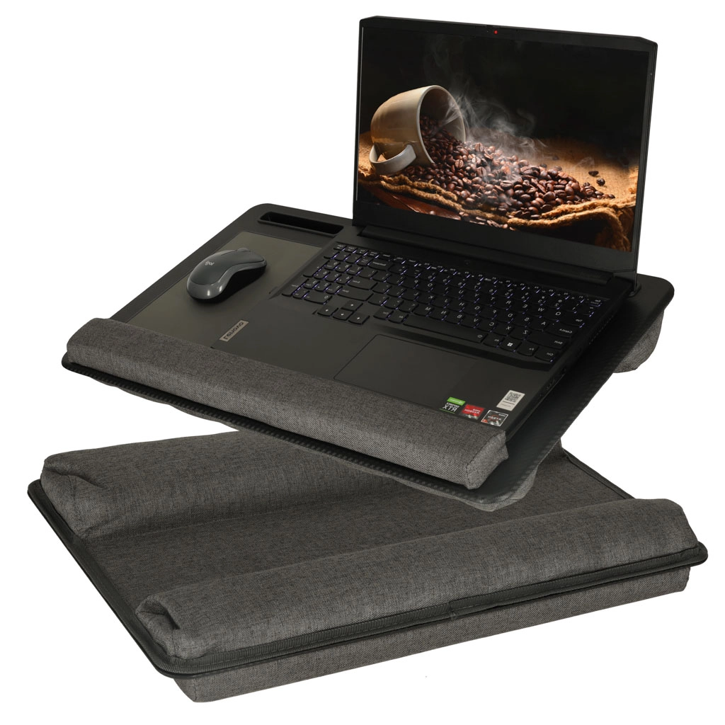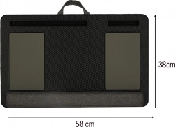 Podwójna poduszka równomiernie rozkłada nacisk na kolanach, minimalizuje przenoszenie ciepła i utrzymuje laptop stabilnie.