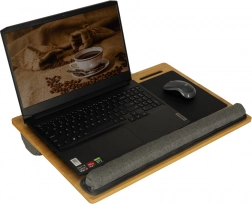 Stylowy i praktyczny stolik na kolana z naturalnego drewna do wygodnej pracy w domu i w podróży. Dzięki miękkiemu spodowi, zintegrowanej podpórce nadgarstków i wydzielonej powierzchni dla myszy oferuje ergonomiczne i stabilne zaplecze dla laptopa, pisania i czytania. Użyjesz go w łóżku, na kanapie i na tarasie – zawsze z maksymalnym komfortem i mobilnością.