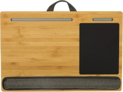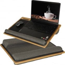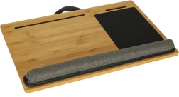 - miękkie dolne poduszki, podpórka nadgarstków, powierzchnia dla myszy, sloty na telefon/tablet, uchwyt do przenoszenia