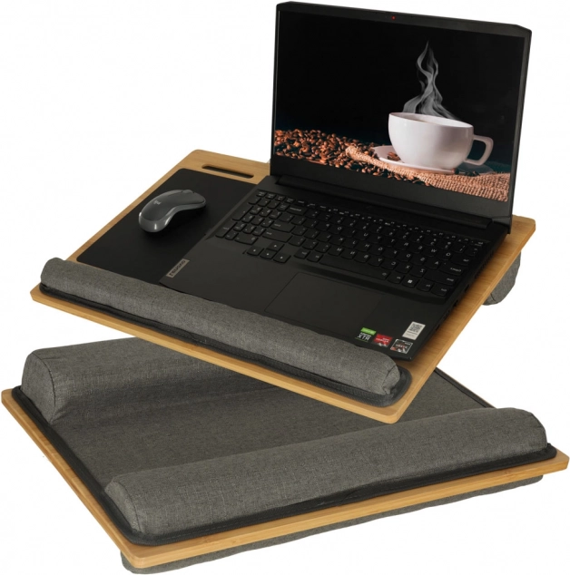 drewniany przenośny stolik na kolana z poduszką do laptopa