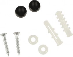 W zestawie akcesoria do przykręcania, w tym kołki, podkładki i zaślepki dla estetycznego wyglądu po montażu.