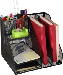 Organizer ma sześć różnych przegródek, które zapewniają efektywne uporządkowanie drobiazgów na twoim biurku.