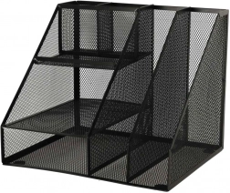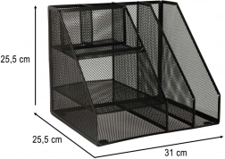 Czarna metalowa siatka nadaje organizerowi minimalistyczny wygląd, co czyni go odpowiednim do każdego pomieszczenia.
