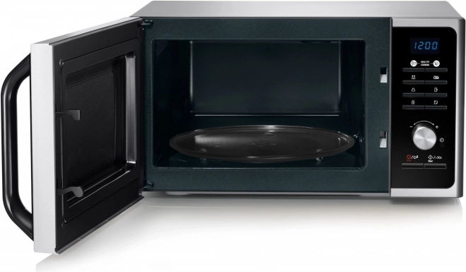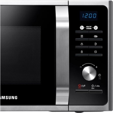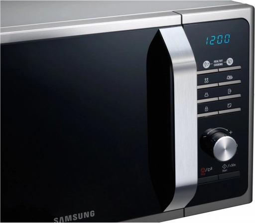 Z tą kuchenką mikrofalową Samsung możesz cieszyć się zdrowym gotowaniem i szybkim rozmrażaniem, a każdy posiłek będzie idealnie przygotowany. Jej eleganckie czarne szkło w połączeniu z metalową konstrukcją oraz intuicyjnym panelem sterowania z wyświetlaczem cyfrowym sprawiają, że to urządzenie jest zarówno estetycznym, jak i funkcjonalnym dodatkiem do Twojej kuchni.