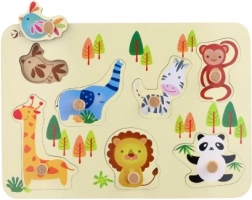 Te drewniane puzzle są idealnym wyborem dla dzieci, które zaczynają odkrywać świat zwierząt. Dzięki guzikom ułatwiającym chwytanie i solidnemu wykonaniu są doskonałym narzędziem do rozwoju motoryki i umiejętności rozpoznawania u dzieci od 18 miesięcy.