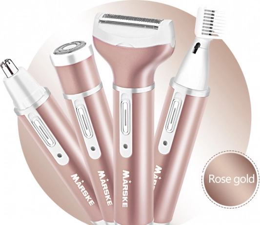 - 4 wymienne głowice – twarz, nos, brwi (z nasadką), golarka do ciała (z nasadką trymującą)