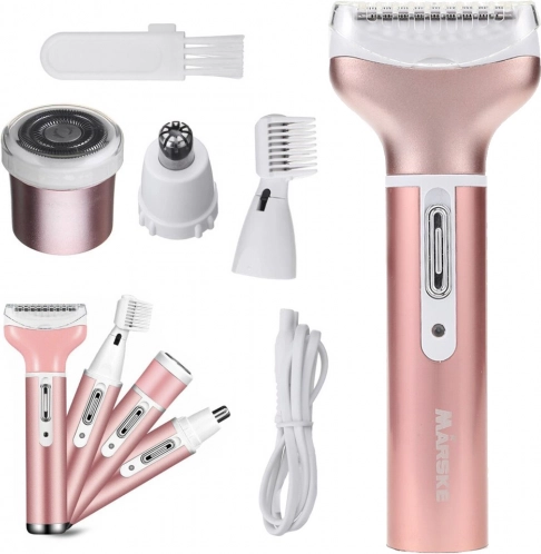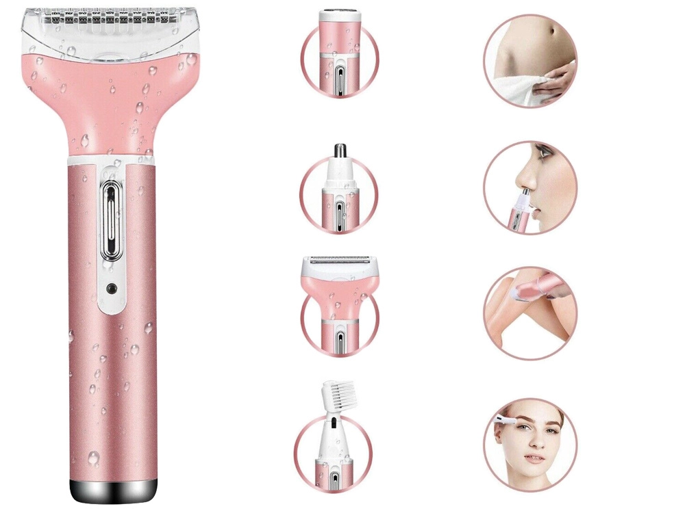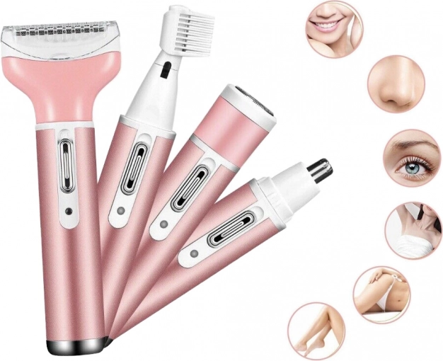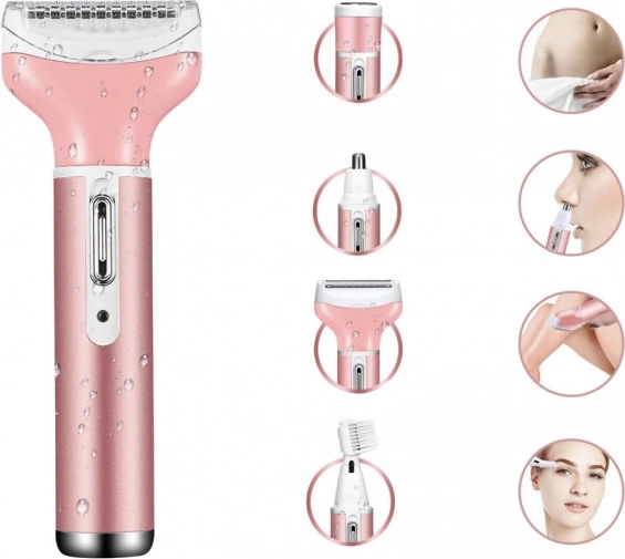 Elegancki damski epilator i golarka 4w1 z wymiennymi głowicami do całego ciała. Oferuje szybkie i delikatne usuwanie włosków bez podrażnień, ergonomiczny uchwyt, ładowanie przez USB oraz łatwą pielęgnację dzięki możliwości mycia głowicy golącej pod wodą.