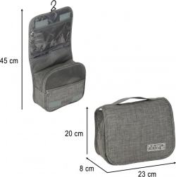 Kosmetyczka jest dodatkowo wyposażona w haczyk, co pozwala na jej zawieszenie na haczyku lub drzwiach łazienki. Ta funkcja jest szczególnie użyteczna w łazience z ograniczoną przestrzenią. Jednocześnie kosmetyczka jest składana, co oszczędza miejsce w twoim bagażu.