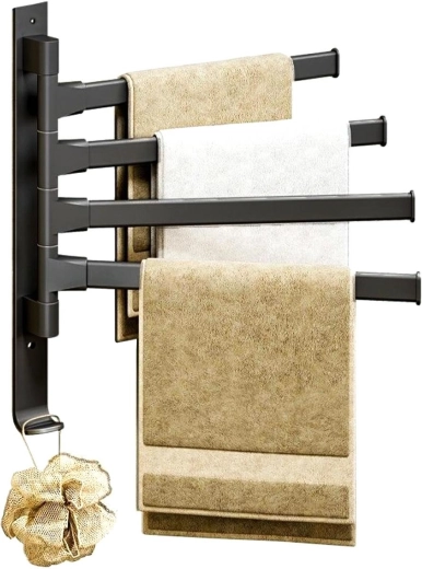 - Uchwyt ma cztery, regulowane ramiona do zawieszania ręczników.