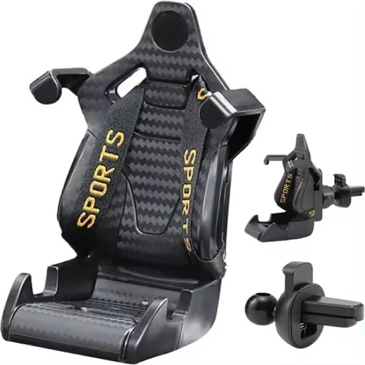 Uniwersalny uchwyt samochodowy do urządzeń mobilnych. Oryginalny kształt w formie fotela wyścigowego. Mocowanie do kratek nawiewu za pomocą klipsa zapewnia wygodną obsługę telefonu podczas jazdy. W pełni regulowany kąt 360 stopni dla optymalnego ustawienia telefonu. Wygodne, regulowane ramię dodatkowo zwiększa komfort. Kompatybilny ze wszystkimi standardowymi smartfonami.