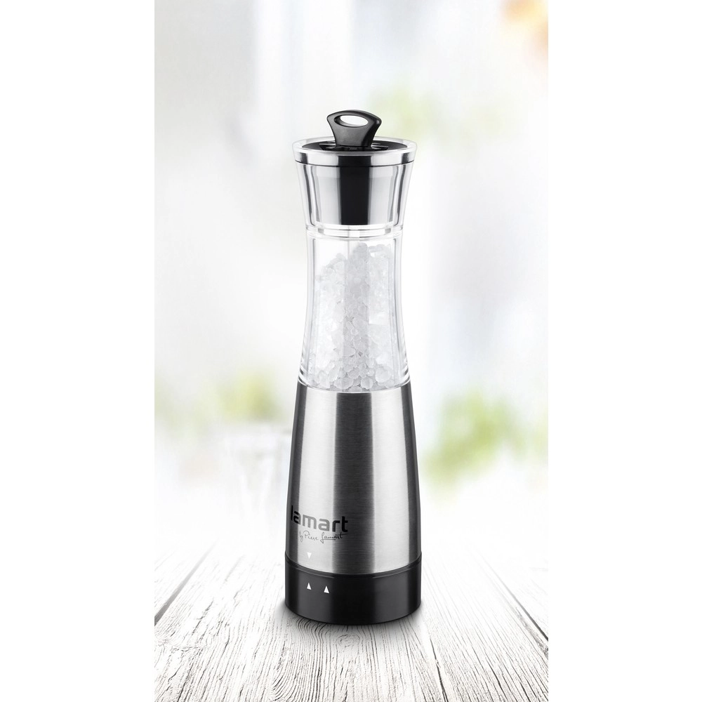 Ciesz się łatwym przyprawianiem jedną ręką dzięki temu elektrycznemu młynkowi do przypraw. Ceramiczny mechanizm mielący z płynną regulacją grubości oraz przezroczysty zbiornik zapewniają pełną kontrolę nad przyprawami. Zasilanie na 4× baterie AAA (brak w zestawie) gwarantuje wygodę użytkowania w każdej kuchni.