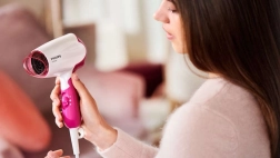 Suszarkę łatwo złożysz do torebki lub walizki. Lekka i ergonomiczna konstrukcja wygodnie leży w dłoni nawet podczas dłuższego suszenia, a uchwyt do zawieszania ułatwia przechowywanie w łazience.