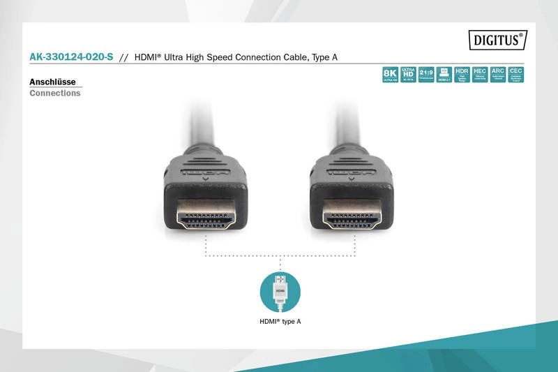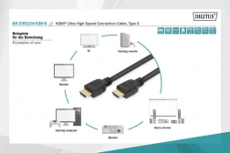 Kabel wyposażono w pozłacane złącza dla minimalnych strat sygnału i długiej żywotności. Zapewnia pełen zestaw funkcji, takich jak ARC/eARC, CEC, HEC, Lip Sync, 3D, format 21:9 oraz dźwięk 32‑kanałowy. Świetnie łączy odtwarzacze Blu‑ray, konsole do gier, dekodery, komputery oraz telewizory/monitory.
