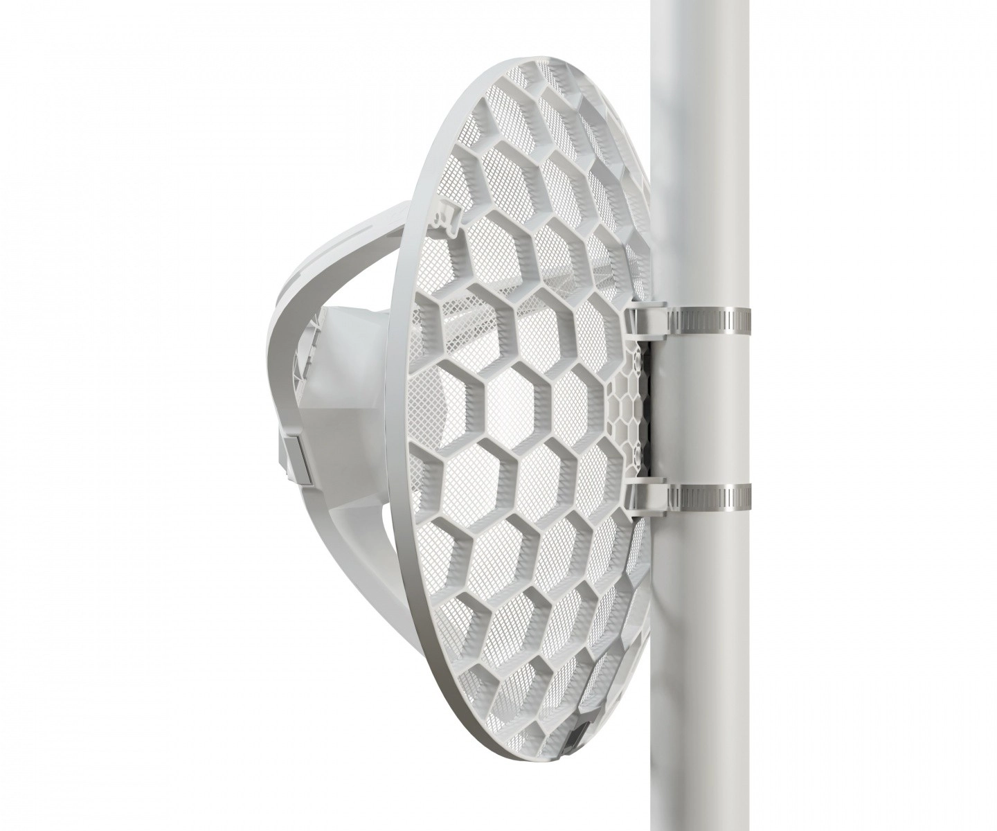 Trwała konstrukcja ze zwiększonym radiatorem zapobiega przegrzewaniu, talerz kratowy zapewnia minimalny opór wiatru i stabilność. Instalacja jest szybka: montaż na słupie/maszcie, zasilanie przez Gigabit Ethernet z PoE (w zestawie injektor), połączenie przez MicroSIM. Wewnątrz pracuje 64‑bitowy dwurdzeniowy ARM dla płynnej pracy i niskich opóźnień.