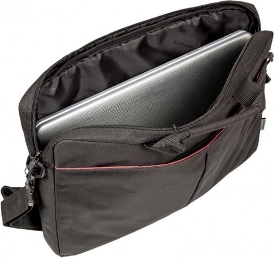 Dzięki wytrzymałemu materiałowi tekstylnemu i solidnym zamkom torba idealnie sprawdzi się w codziennych dojazdach i w podróży. Regulowany pasek na ramię i mocny uchwyt zapewniają wygodne przenoszenie, a smukły profil bez trudu wpisuje się w styl biurowy.