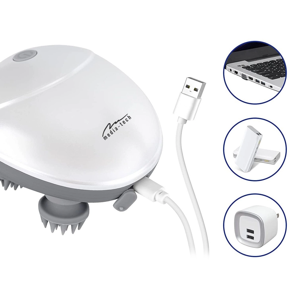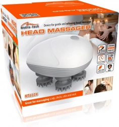 Media-Tech Head Massager to ergonomiczny ręczny masażer, który dzięki czterem miękkim głowicom z silikonowymi wypustkami realistycznie symuluje profesjonalny masaż palcami. Jest lekki, łatwy w obsłudze i idealny do codziennego użytku w domu i w biurze.