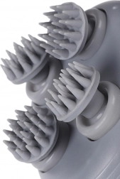 Cztery obrotowe głowice masujące z silikonowymi wypustkami naśladują ugniatające ruchy palców i rozluźniają napięcie skóry głowy oraz karku.