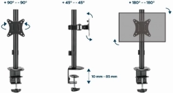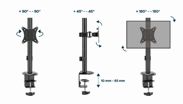 Ciesz się ergonomiczną pracą z tym uchwytem na monitor, który umożliwia elastyczne ustawienie pozycji i kąta wyświetlacza dla maksymalnego komfortu i oszczędności miejsca.