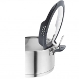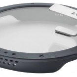 Szklane pokrywki z silikonową krawędzią mają dwa rozmiary sitka do łatwego odlewania makaronu lub warzyw i można je umocować w pozycji pionowej na krawędzi garnka – mniej bałaganu i więcej przestrzeni.