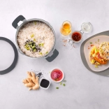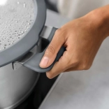Ergonomiczne uchwyty z miękkim w dotyku silikonem pozostają chłodne i zapewniają pewny, wygodny chwyt nawet przy częstym gotowaniu.