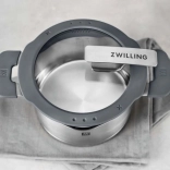 Zestaw pięciu garnków ZWILLING Simplify łączy elegancki design, wysoką trwałość i przemyślane funkcje do codziennego gotowania. Szklane pokrywki z silikonową krawędzią dobrze przylegają, mają zintegrowane sitko do szybkiego odlewania i można je zamocować pionowo na krawędzi garnka – mniej kropel na blacie i więcej miejsca podczas pracy.