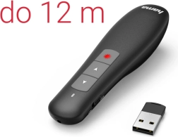 Hama X-Pointer to niezawodny towarzysz każdej prezentacji. Bezprzewodowa technologia 2,4 GHz zapewnia stabilne połączenie z zasięgiem do 12 metrów, dzięki czemu możesz swobodnie poruszać się po sali. Zintegrowany czerwony laser pozwala szybko i wyraźnie zwrócić uwagę na kluczowe elementy na ekranie.
