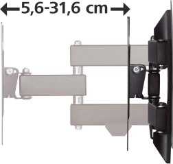 Zgodny ze standardami VESA od 75x75 do 200x200 mm, udźwignie telewizor o wadze do 20 kg. Maksymalna i minimalna odległość od ściany to 31,6 cm i 5,6 cm, co zapewnia dopasowanie do indywidualnych preferencji. Czarny kolor stalowej blachy łatwo wpasuje się w większość wnętrz.