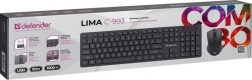 Bezprzewodowy zestaw DEFENDER LIMA C-993 łączy komfort i prostotę. Pełnowymiarowa klawiatura z blokiem numerycznym gwarantuje szybkie wprowadzanie liczb, a niskoprofilowe klawisze oferują cichy i przyjemny skok. Symetryczna mysz dobrze leży w lewej i prawej dłoni, dzięki czemu odpowiada każdemu użytkownikowi.