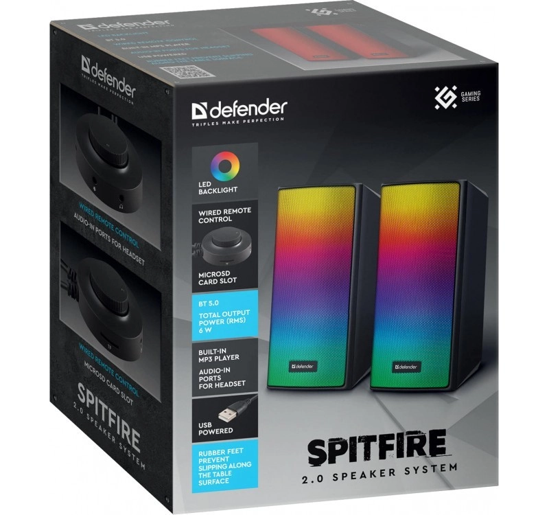 Ciesz się czystym dźwiękiem stereo w eleganckiej formie. Głośniki DEFENDER Spitfire 2.0 łączą stabilny Bluetooth 5.2 o niskim zużyciu energii, łatwe podłączenie przez zasilanie USB oraz efektowne elementy LED, które ożywią każdy gamingowy i roboczy setup.