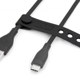 W zestawie organizer przewodów wykonany z silikonu, zapewniający czyste i efektywne zarządzanie kablami.