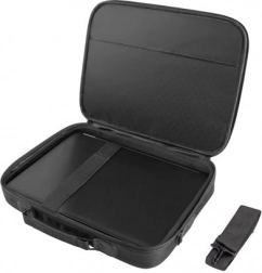 Przemyślane wnętrze bez trudu mieści ładowarkę i akcesoria, a przednia kieszeń na zamek jest idealna na dokumenty i drobiazgi. Wytrzymały materiał tekstylny o wysokiej odporności na ścieranie i zwiększonej odporności na wilgoć chroni zawartość w wymagających warunkach. Komfort zapewniają regulowany pasek na ramię oraz wygodny uchwyt, a ponadczasowy czarny wygląd z subtelnym logo podkreśla profesjonalny styl.