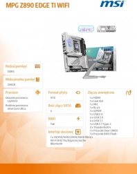 Gamingowa płyta główna MSI MPG Z890 EDGE TI WIFI została zaprojektowana dla entuzjastów białych PC z Killer Wi‑Fi 7, 5G LAN, Thunderbolt 4 oraz zgodnością z PCIe 5.0. Idealny wybór dla procesorów Intel Core Ultra.