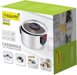 Garnek Maestro o średnicy 20 cm oferuje wysokiej jakości stal nierdzewną, która nie tylko gwarantuje długotrwałe użytkowanie, ale także elegancki design, doskonale pasujący do każdej kuchni. Dzięki wielowarstwowej podstawie garnek szybko i równomiernie nagrzewa się, co przyczynia się do bardziej efektywnego gotowania i oszczędności energii. Pokrywka wyposażona w otwór dla odpływu pary pozwala śledzić proces gotowania bez utraty ciepła.