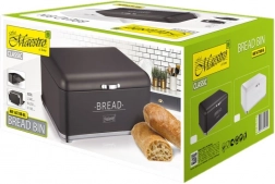 Chlebak Maestro wykonany jest z wysokiej jakości stali nierdzewnej, co zapewnia długą żywotność i odporność. Jego elegancki czarny design z chromowanymi detalami nadaje kuchni nowoczesny wygląd, a ergonomiczna konstrukcja umożliwia łatwe użytkowanie. Chlebak został zaprojektowany tak, aby chronić pieczywo przed wysychaniem i powstawaniem pleśni, co wydłuża jego świeżość.