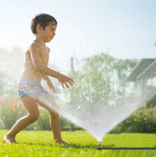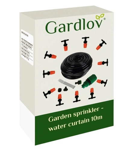 Wodna kurtyna tworzy delikatną mgiełkę, która pochłania ciepło z otoczenia i zapewnia przyjemne chłodzenie podczas upałów. Dzięki 11 wysokiej jakości dyszom o średnicy 6 mm zasięg jest równomierny i łagodny dla roślin oraz ludzi. Montaż jest szybki – wystarczy podłączyć do standardowego przyłącza wody 1/2" i przymocować wąż za pomocą dołączonych opasek zaciskowych.